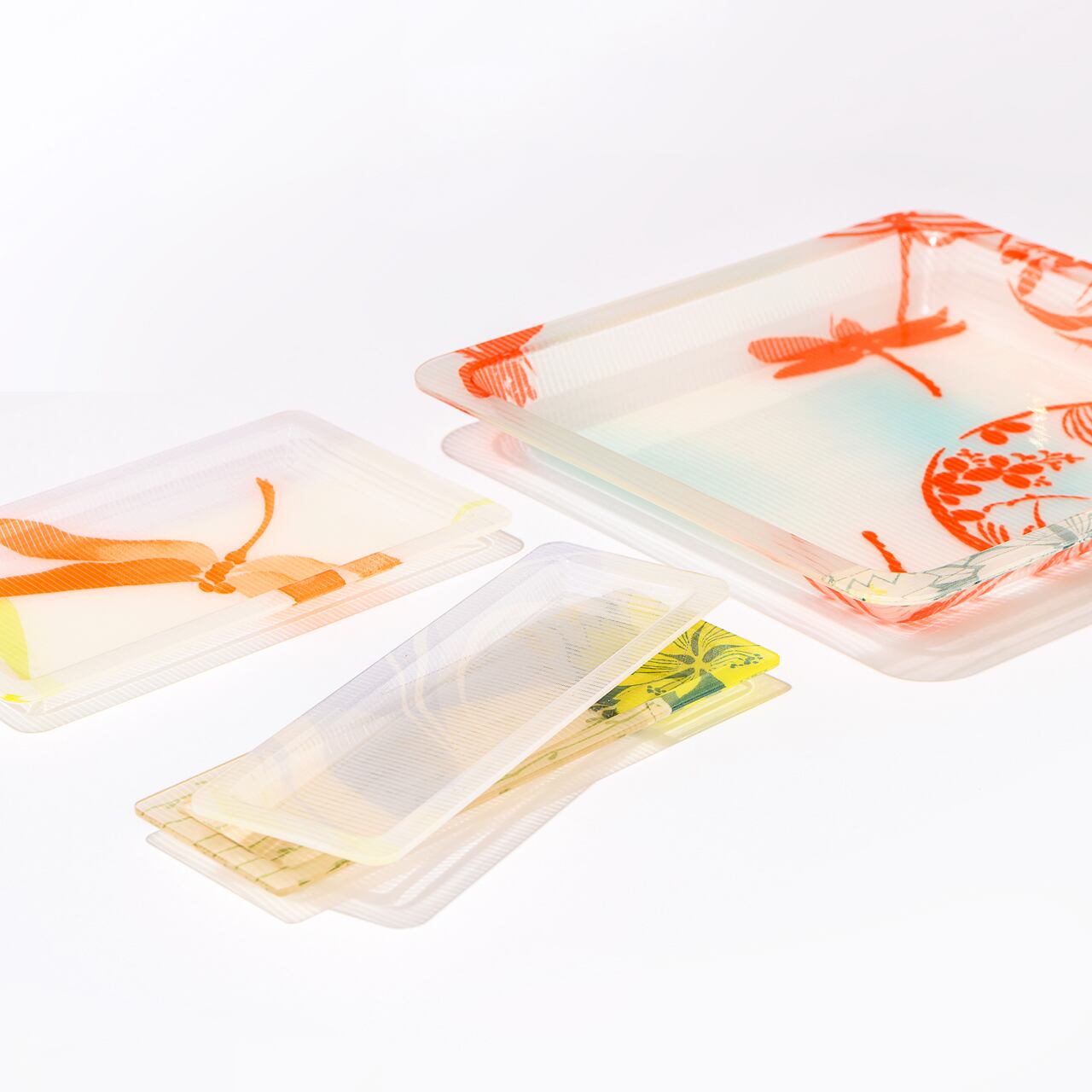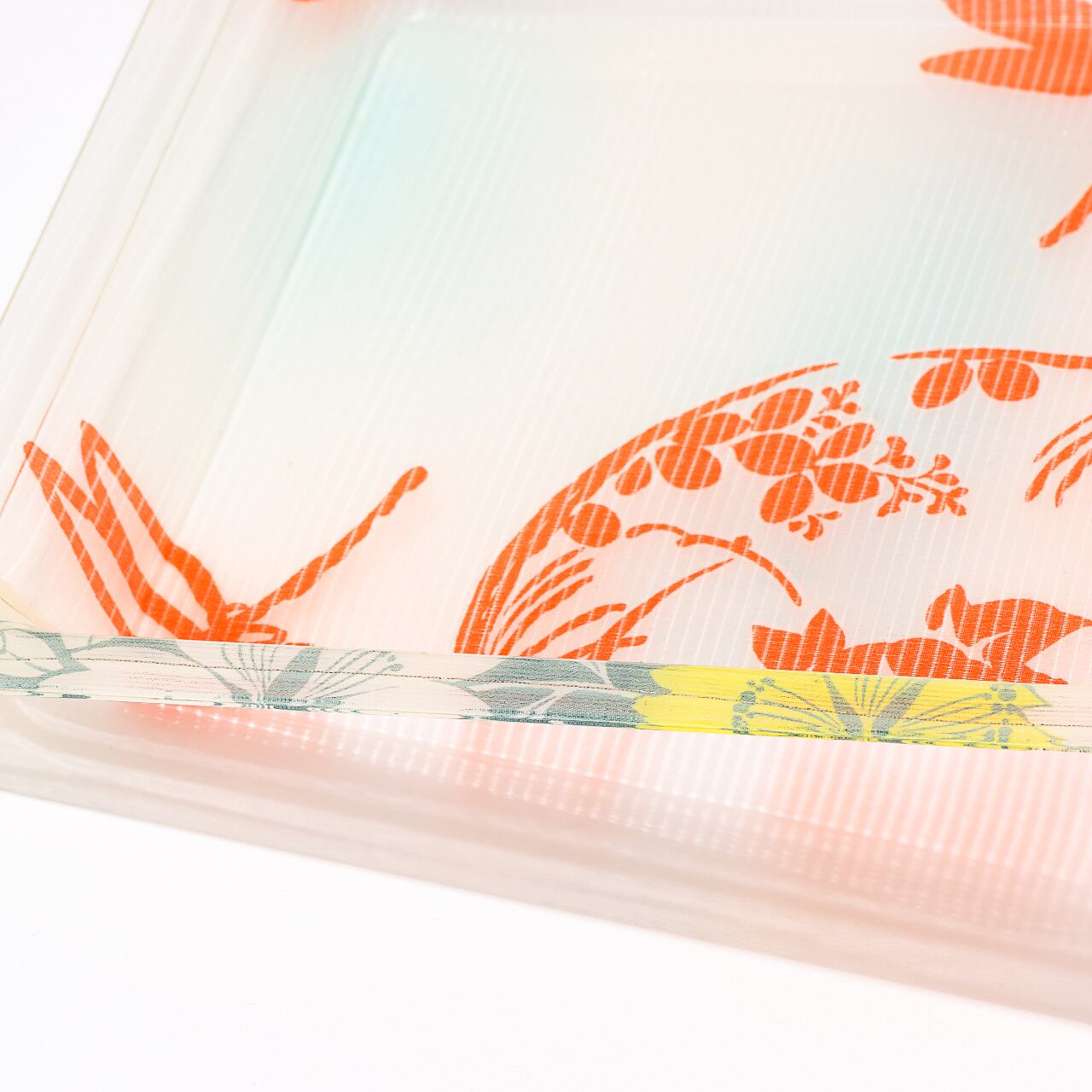 ヴィンテージの夏着物をアクリルで挟み込んだスクエアトレイ。和の美しさとモダンなデザインが融合した一品です。職人の手によって丁寧に作り上げられたトレイは、繊細な柄や色合いが鮮やかに映えます。お料理を盛り付けたり、和室やリビングルームのアクセントとしてもお使い頂けます。アクリル素材なので軽くて丈夫です。使い勝手も良く、小物入れやおしゃれなディスプレイとしても活躍します。ヴィンテージ着物の美しさを引き立てるスクエアトレイです。